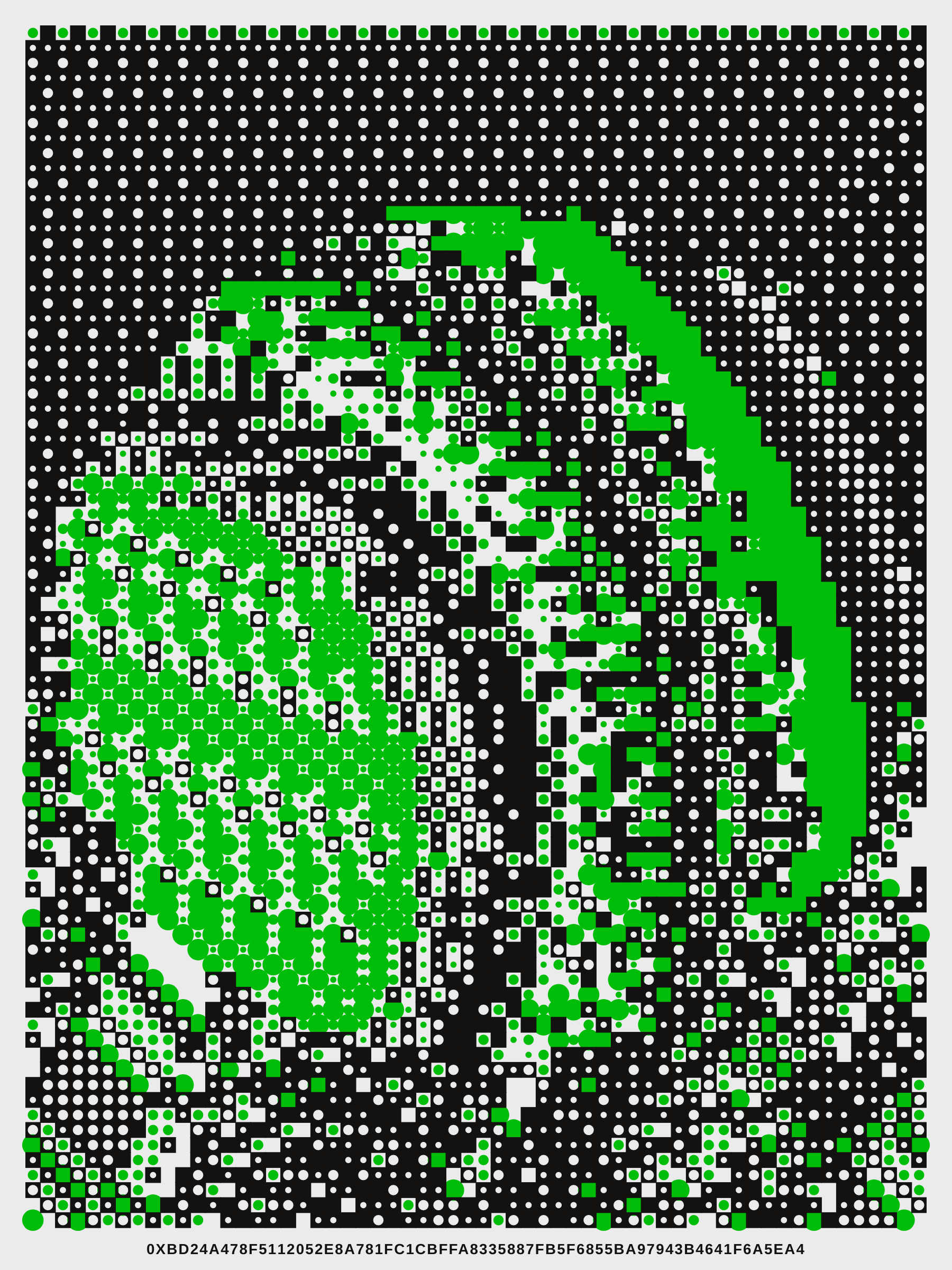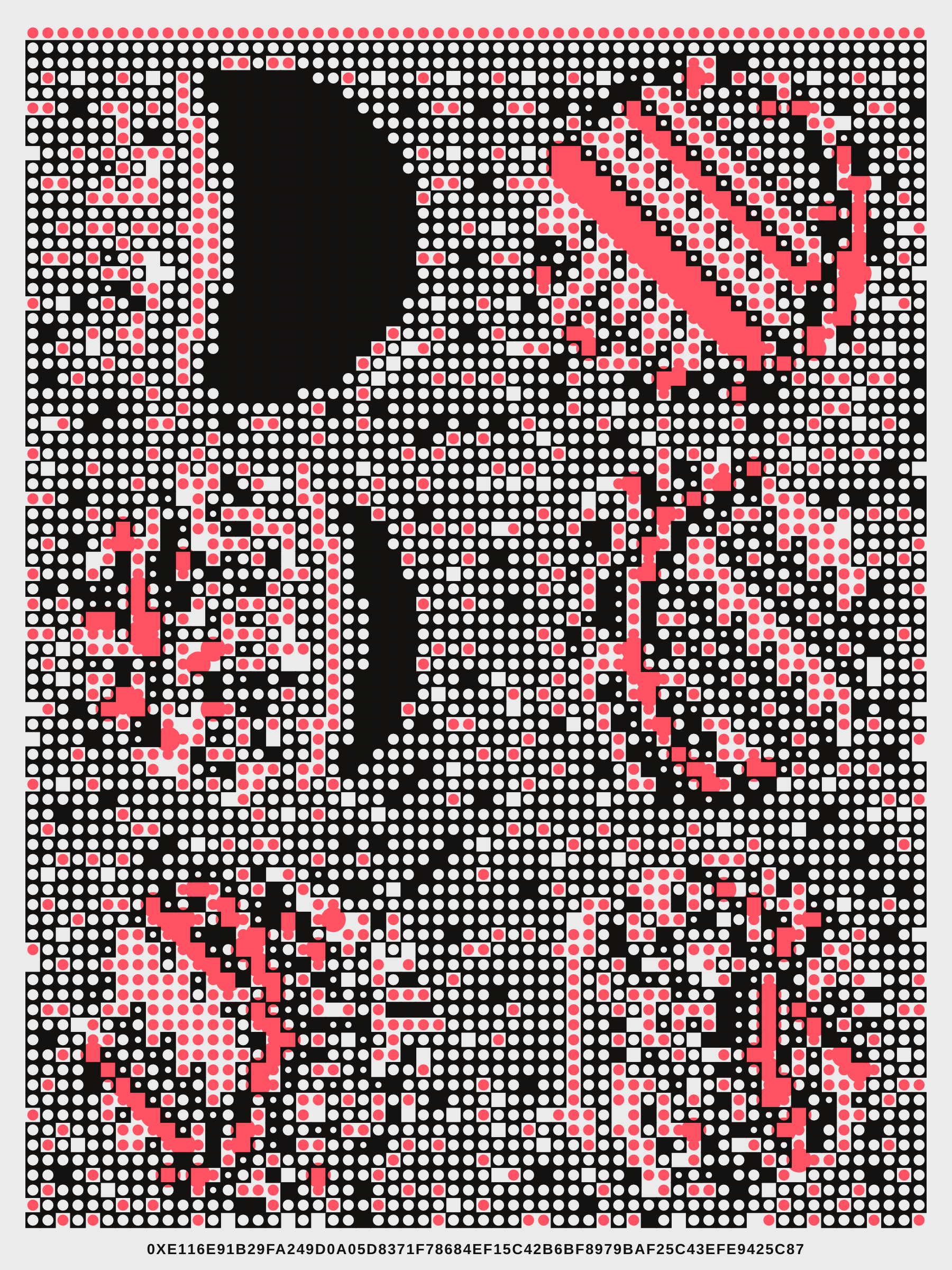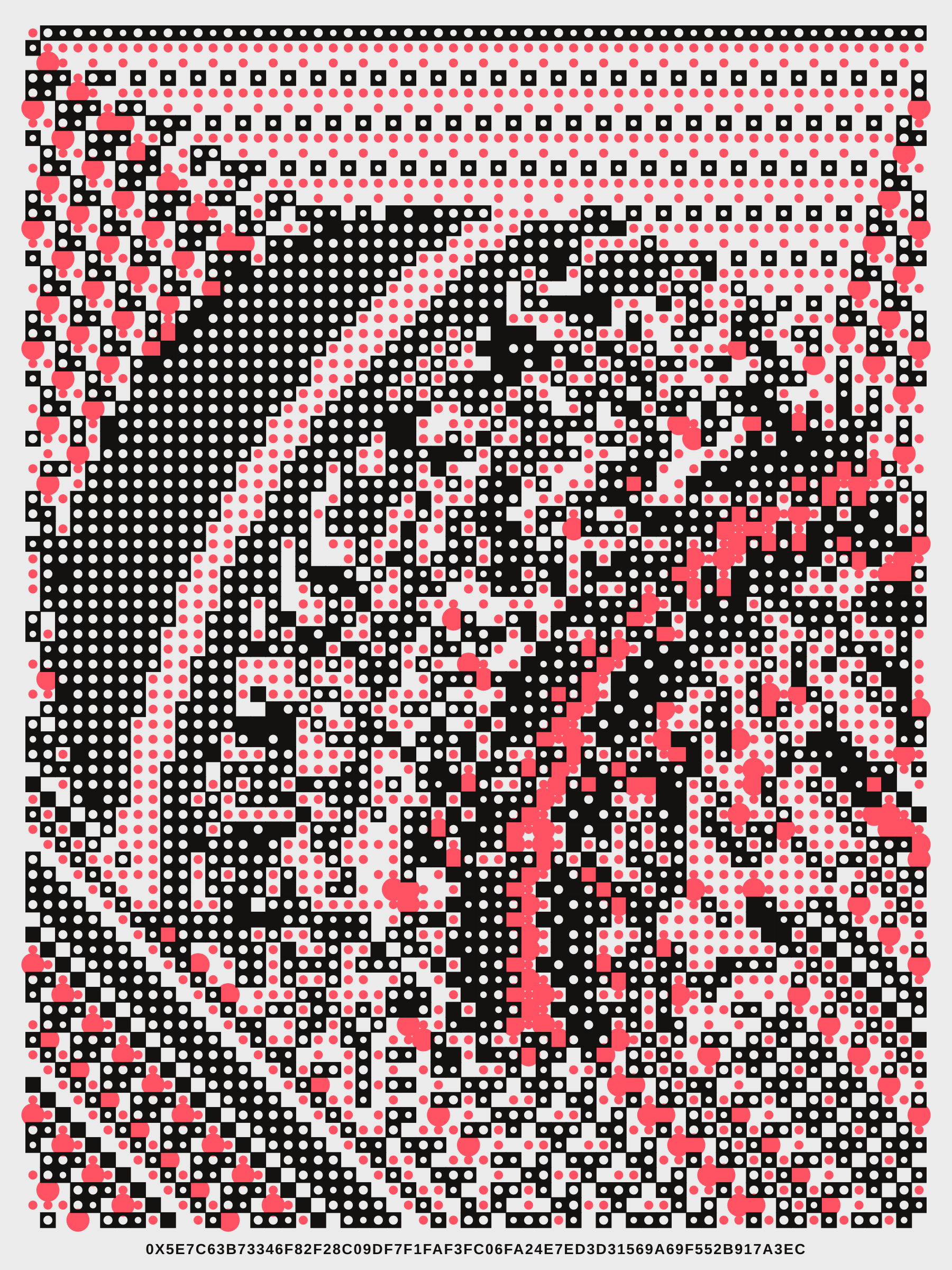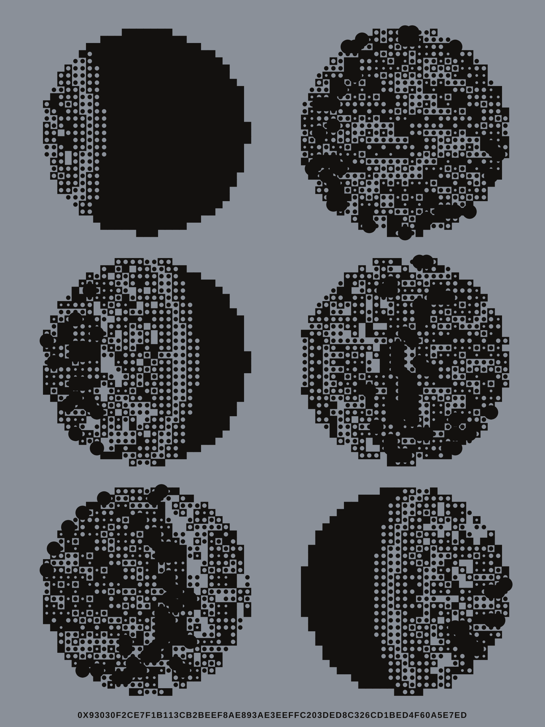 [5. IMG: DITHERING] THE METHOD FOR GENERATING THE PATTERN IS CALLED DITHERING, WHICH IS BOTH INHERENTLY AS MUCH A DIGITAL PROCESS (I.E. BITMAPPING) AS IT IS A PHYSICAL ONE (I.E. HALFTONE). THE SCRIPT USES A MODIFIED FLOYD–STEINBERG DITHER ALGORITHM TO APPROXIMATE THE LIGHT BETWEEN EACH PIXEL AND CREATE UNIQUE PATTERNS.