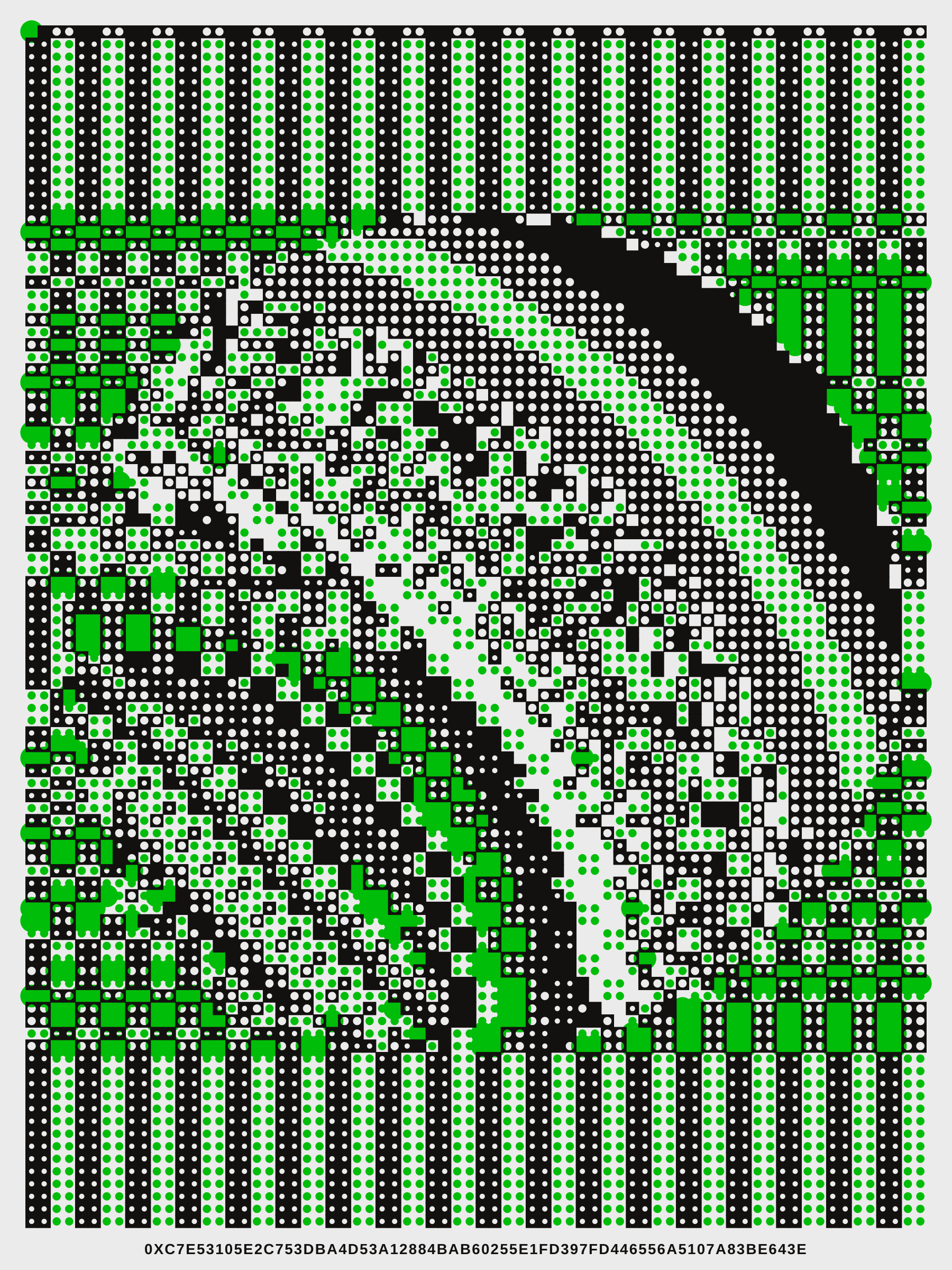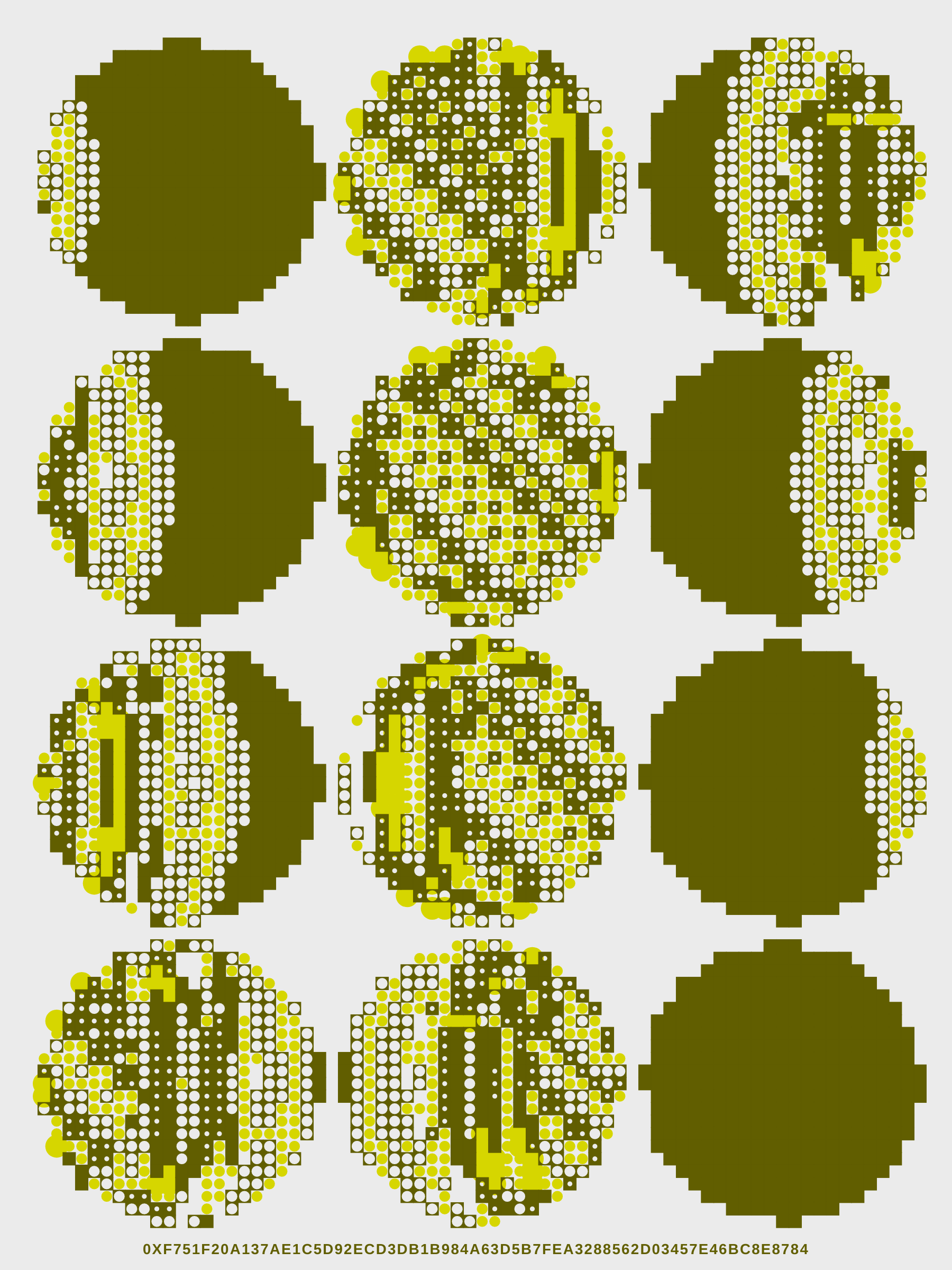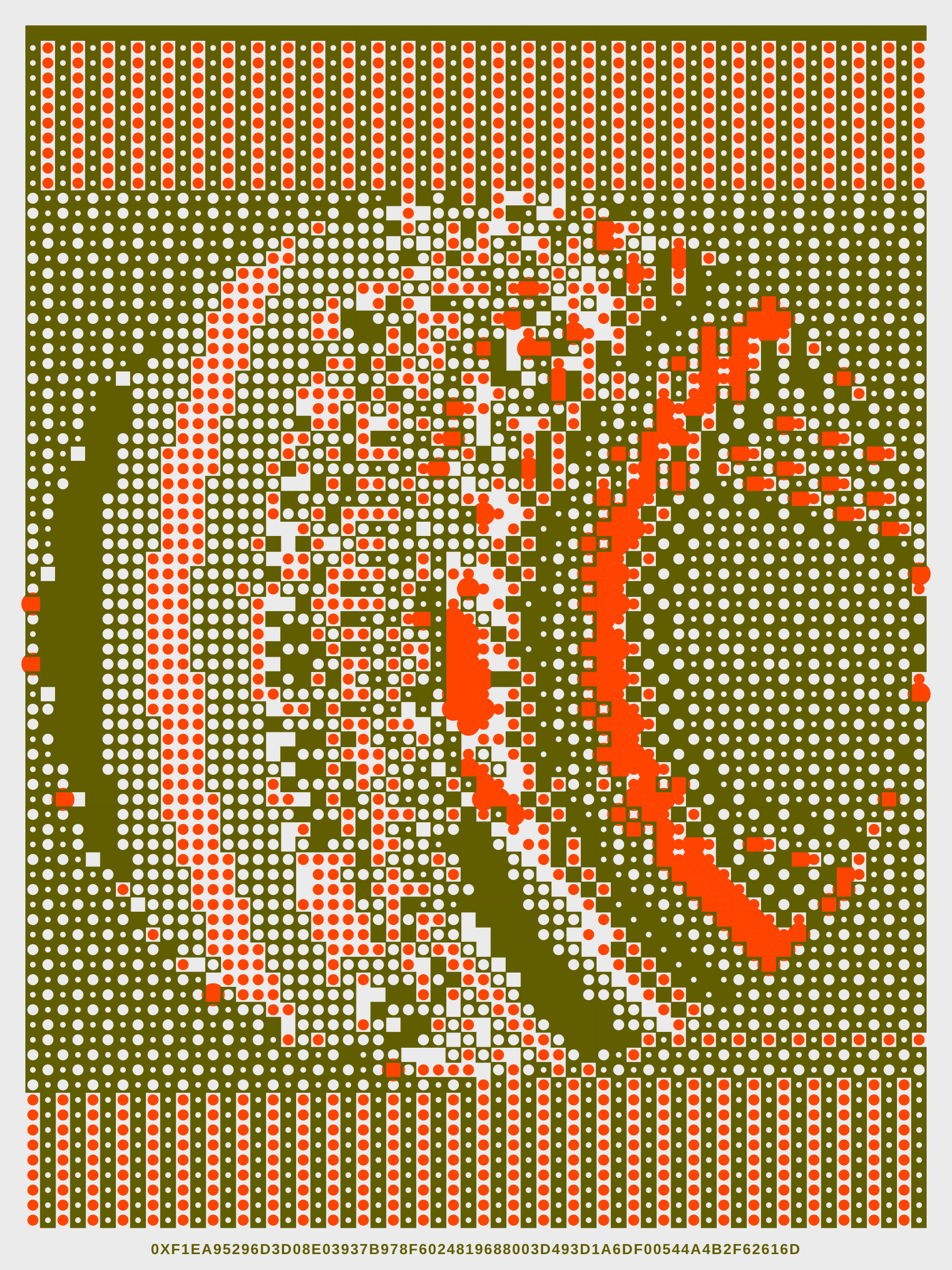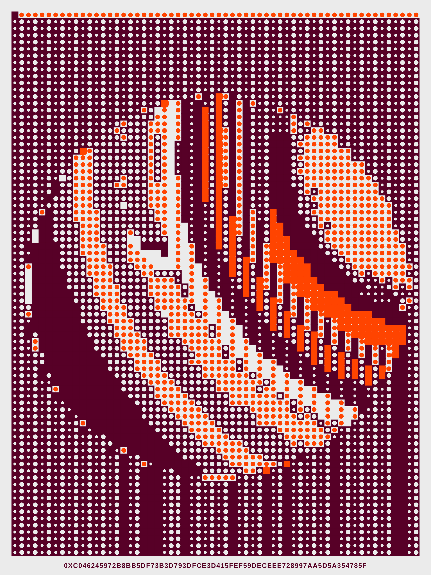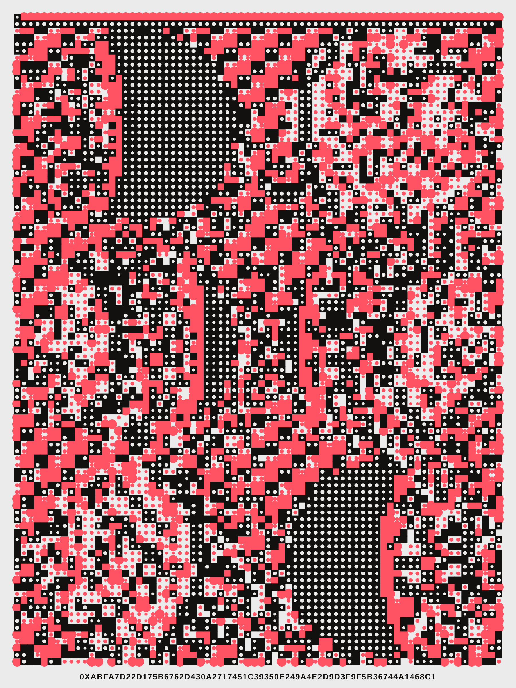 [5. IMG: DITHERING] THE METHOD FOR GENERATING THE PATTERN IS CALLED DITHERING, WHICH IS BOTH INHERENTLY AS MUCH A DIGITAL PROCESS (I.E. BITMAPPING) AS IT IS A PHYSICAL ONE (I.E. HALFTONE). THE SCRIPT USES A MODIFIED FLOYD–STEINBERG DITHER ALGORITHM TO APPROXIMATE THE LIGHT BETWEEN EACH PIXEL AND CREATE UNIQUE PATTERNS.