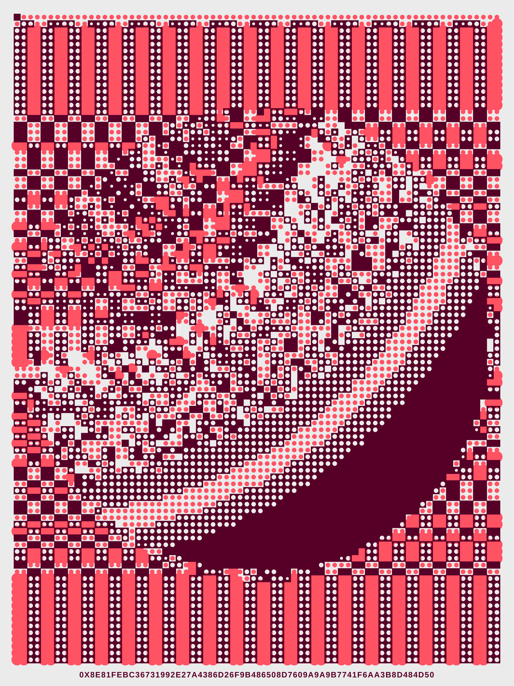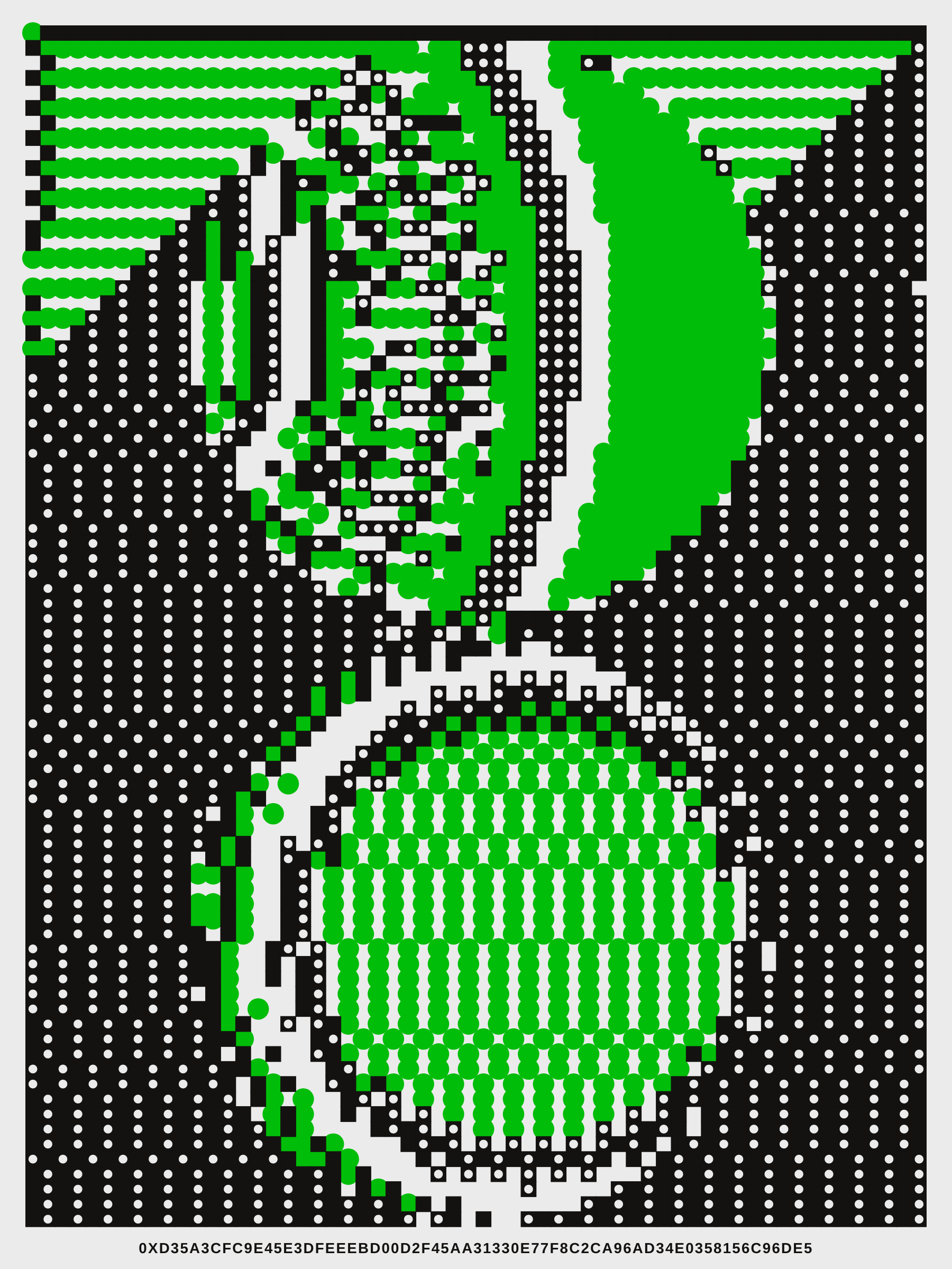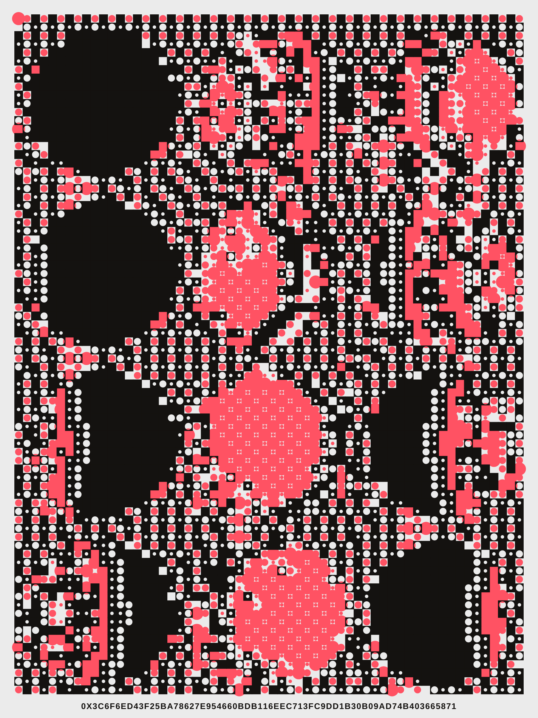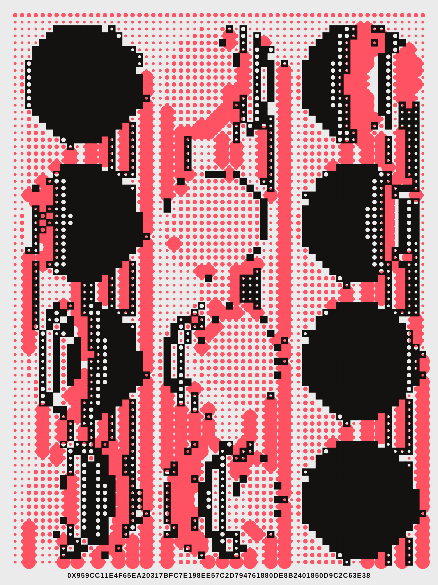 [5. IMG: DITHERING] THE METHOD FOR GENERATING THE PATTERN IS CALLED DITHERING, WHICH IS BOTH INHERENTLY AS MUCH A DIGITAL PROCESS (I.E. BITMAPPING) AS IT IS A PHYSICAL ONE (I.E. HALFTONE). THE SCRIPT USES A MODIFIED FLOYD–STEINBERG DITHER ALGORITHM TO APPROXIMATE THE LIGHT BETWEEN EACH PIXEL AND CREATE UNIQUE PATTERNS.